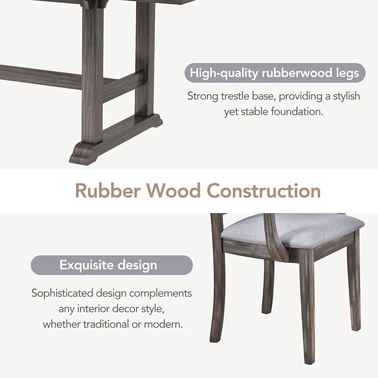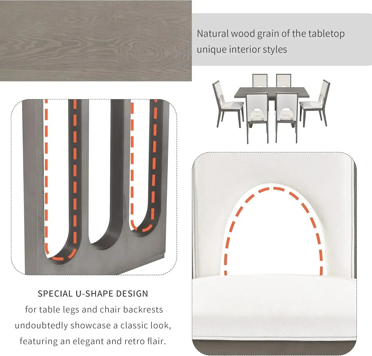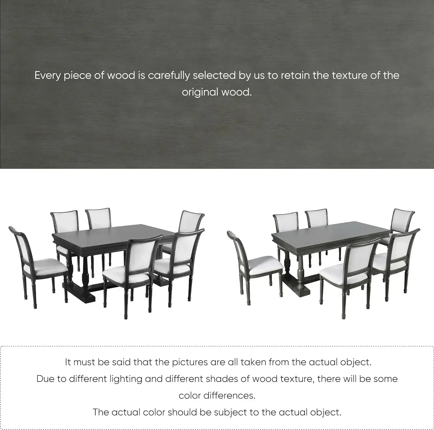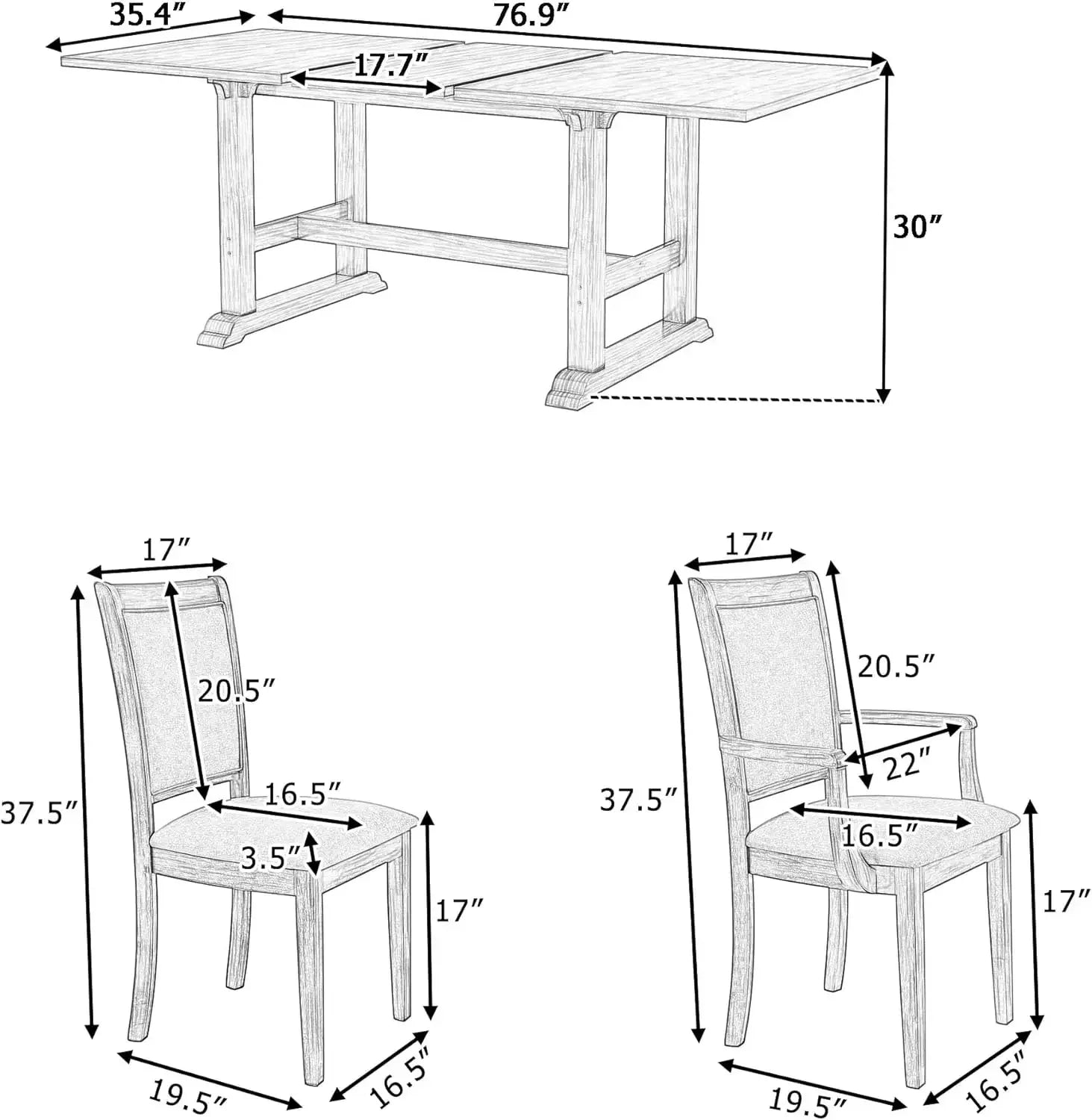 7-Piece Kitchen Dining Table Set for 6, Wood Kitchen Table and 6 Upholstered Chairs with Backrest