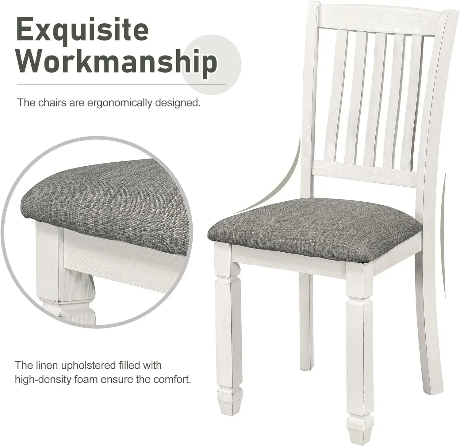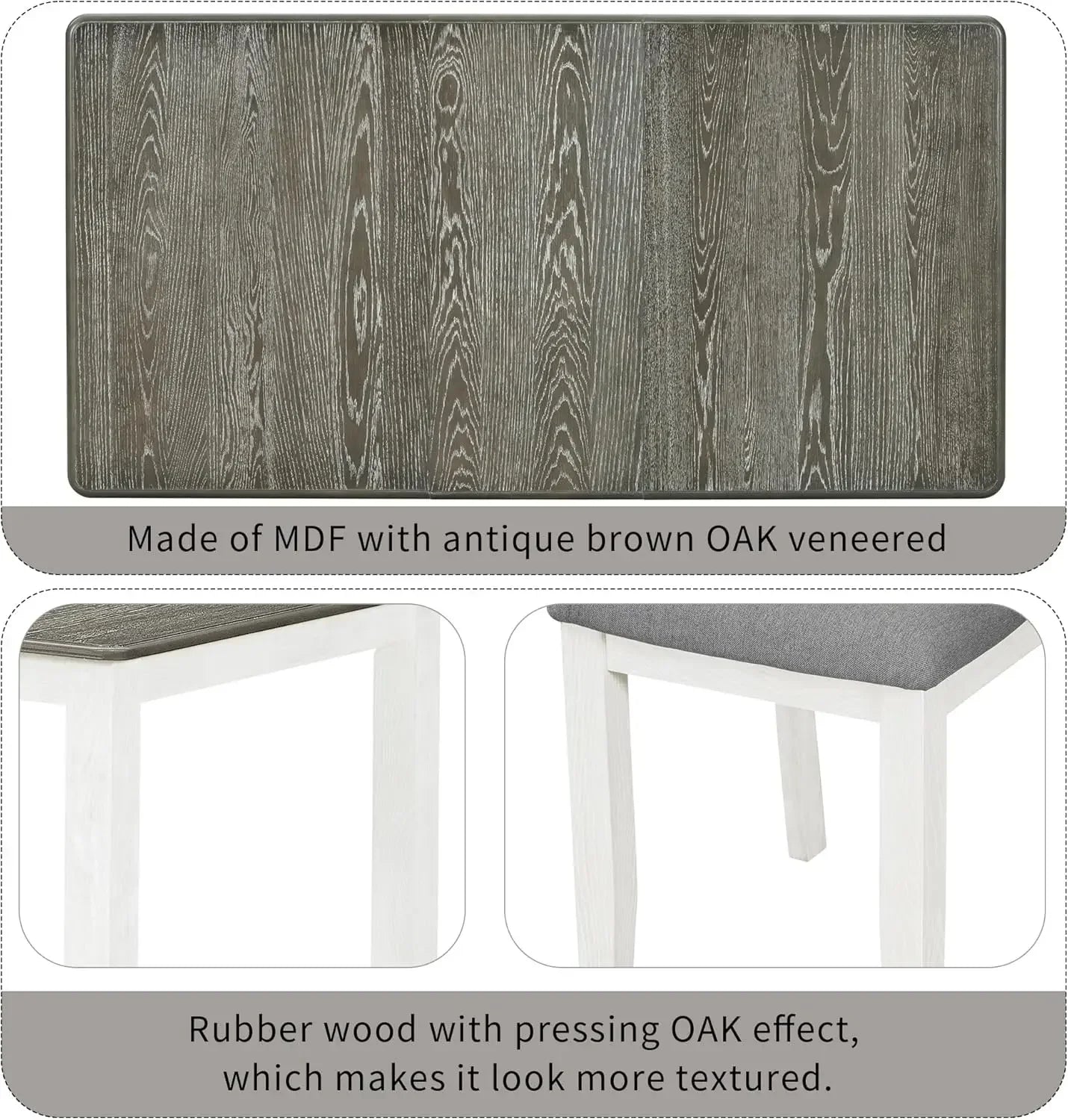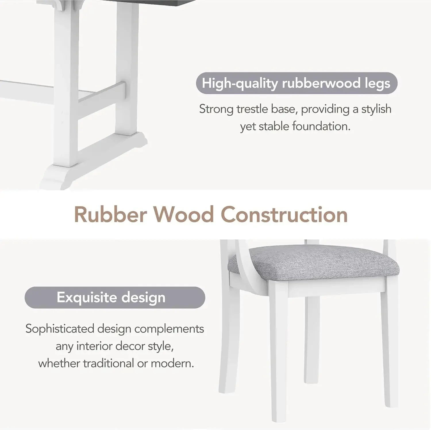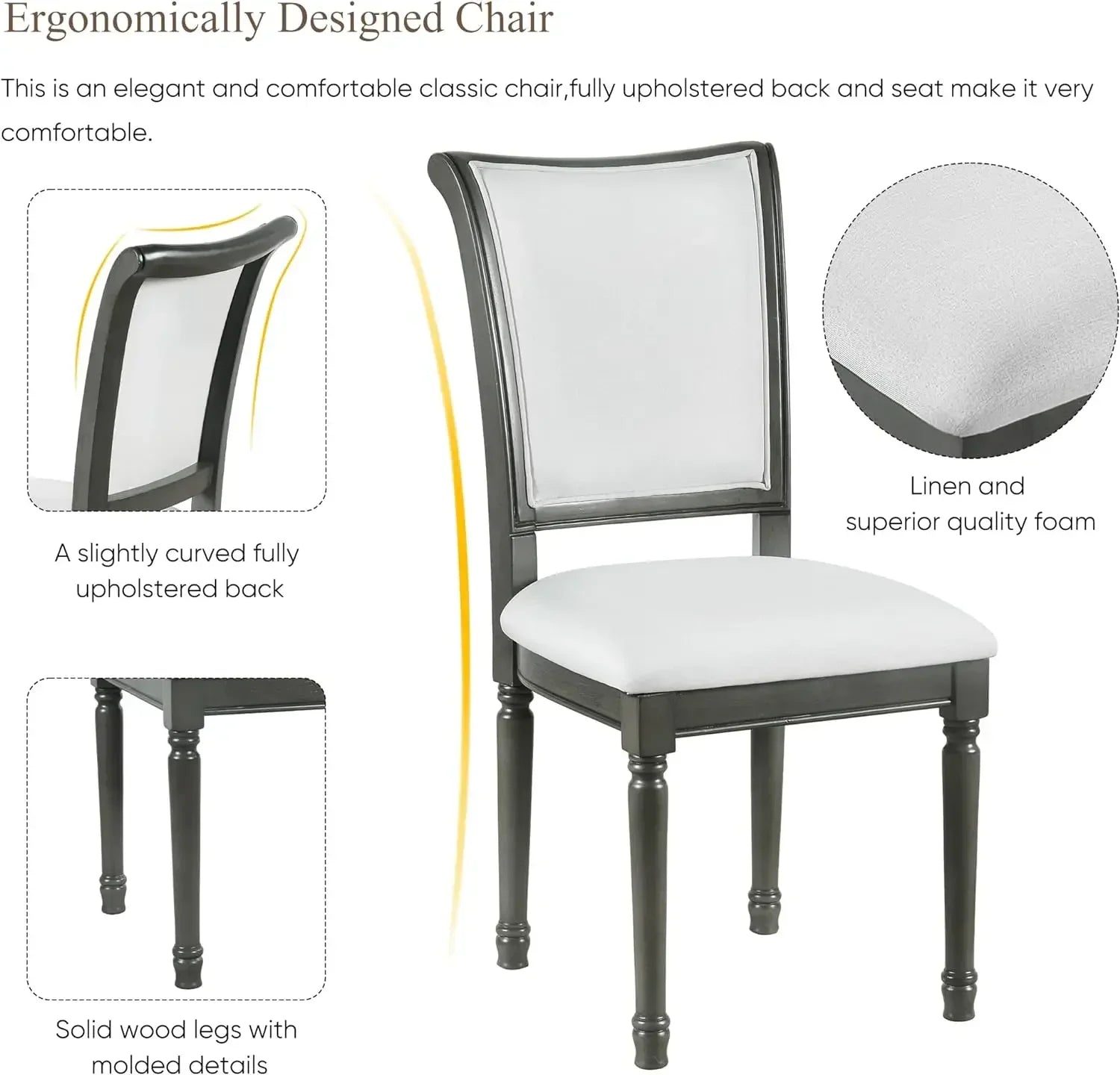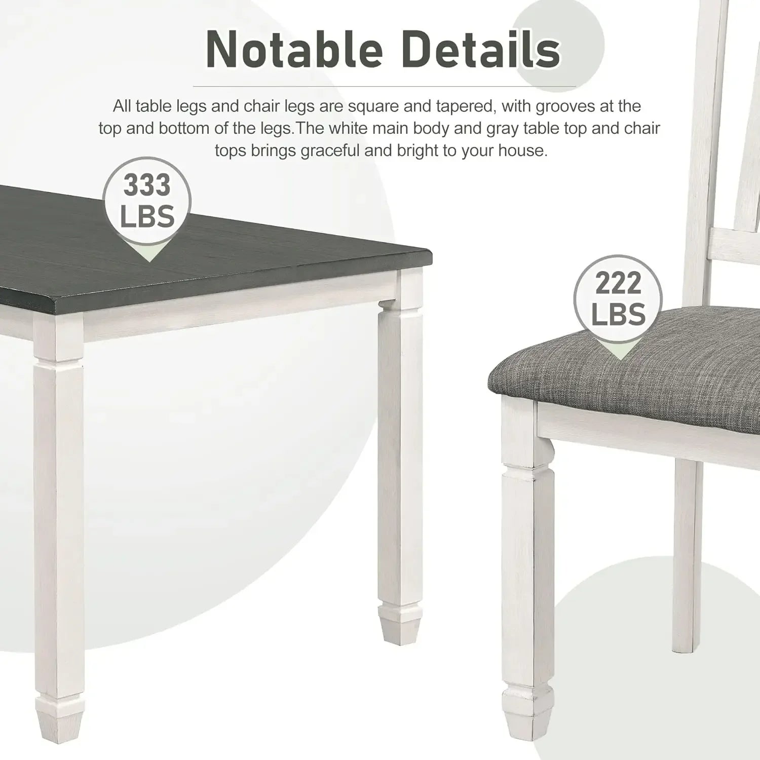 7-Piece Kitchen Dining Table Set for 6, Wood Kitchen Table and 6 Upholstered Chairs with Backrest