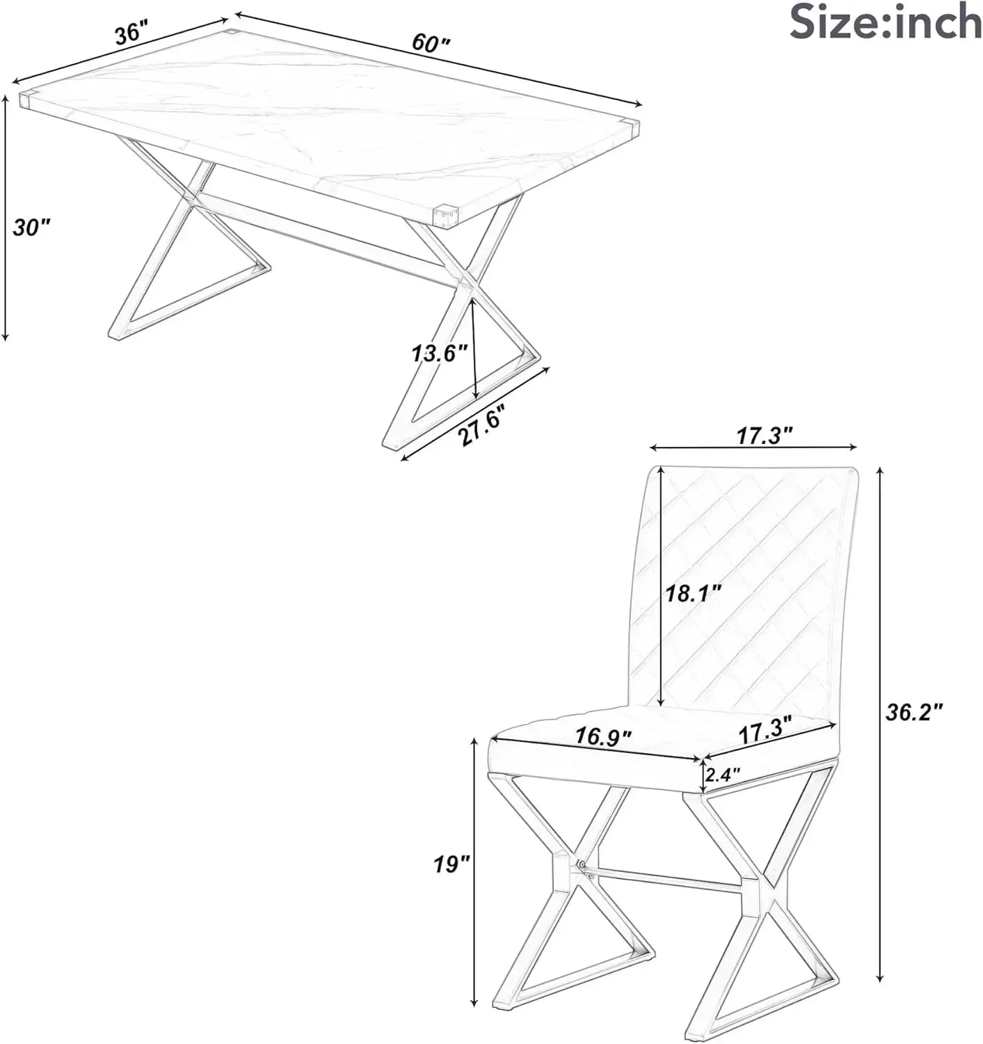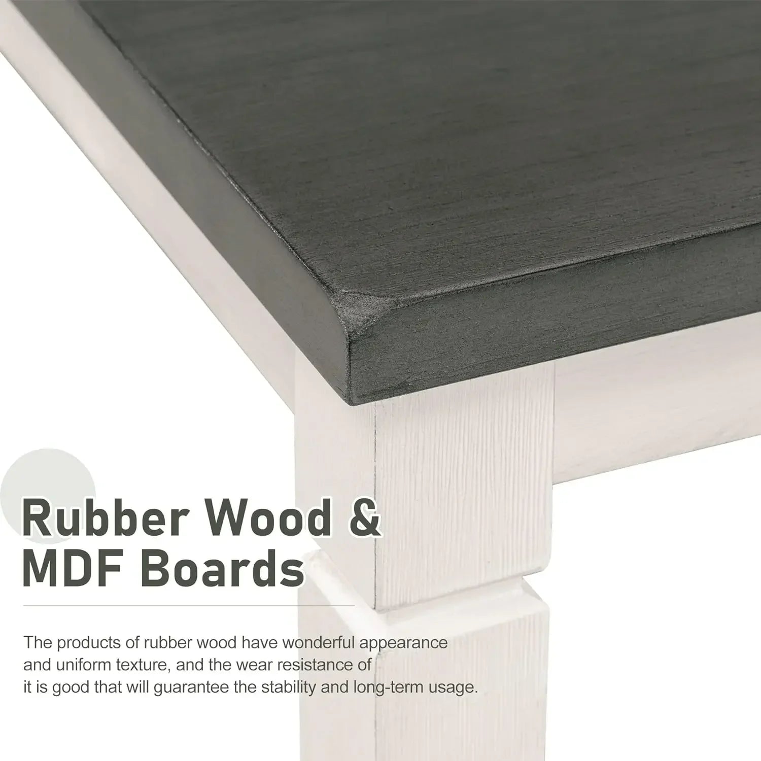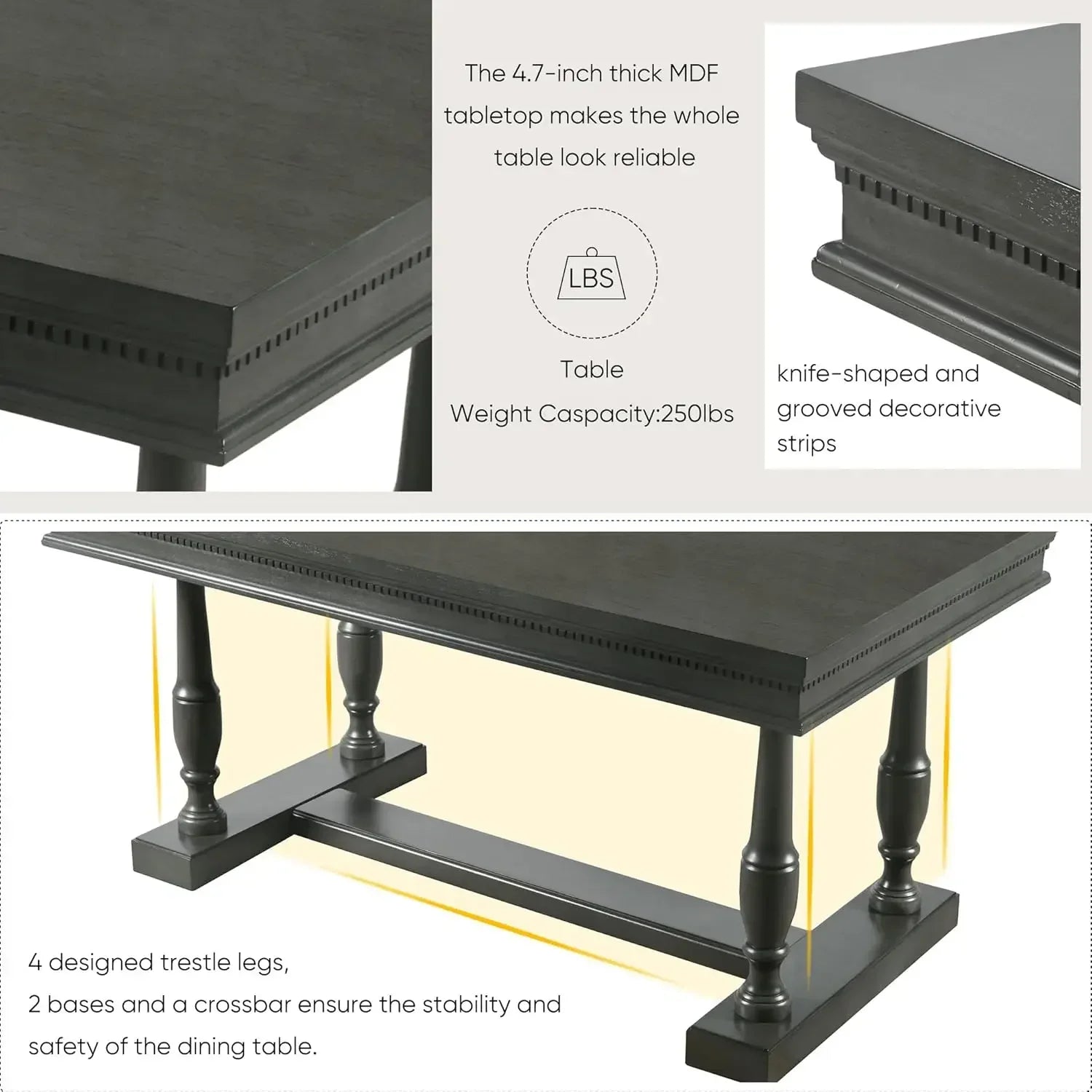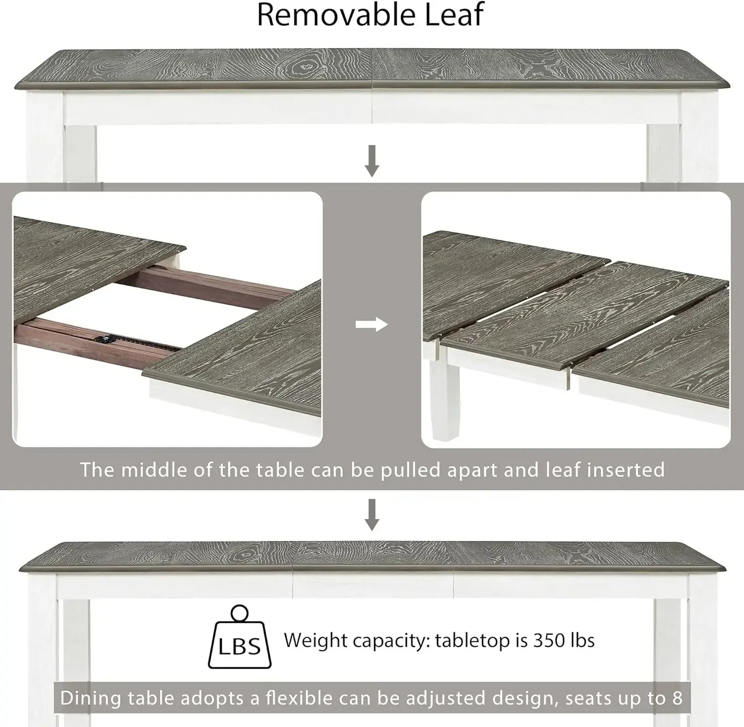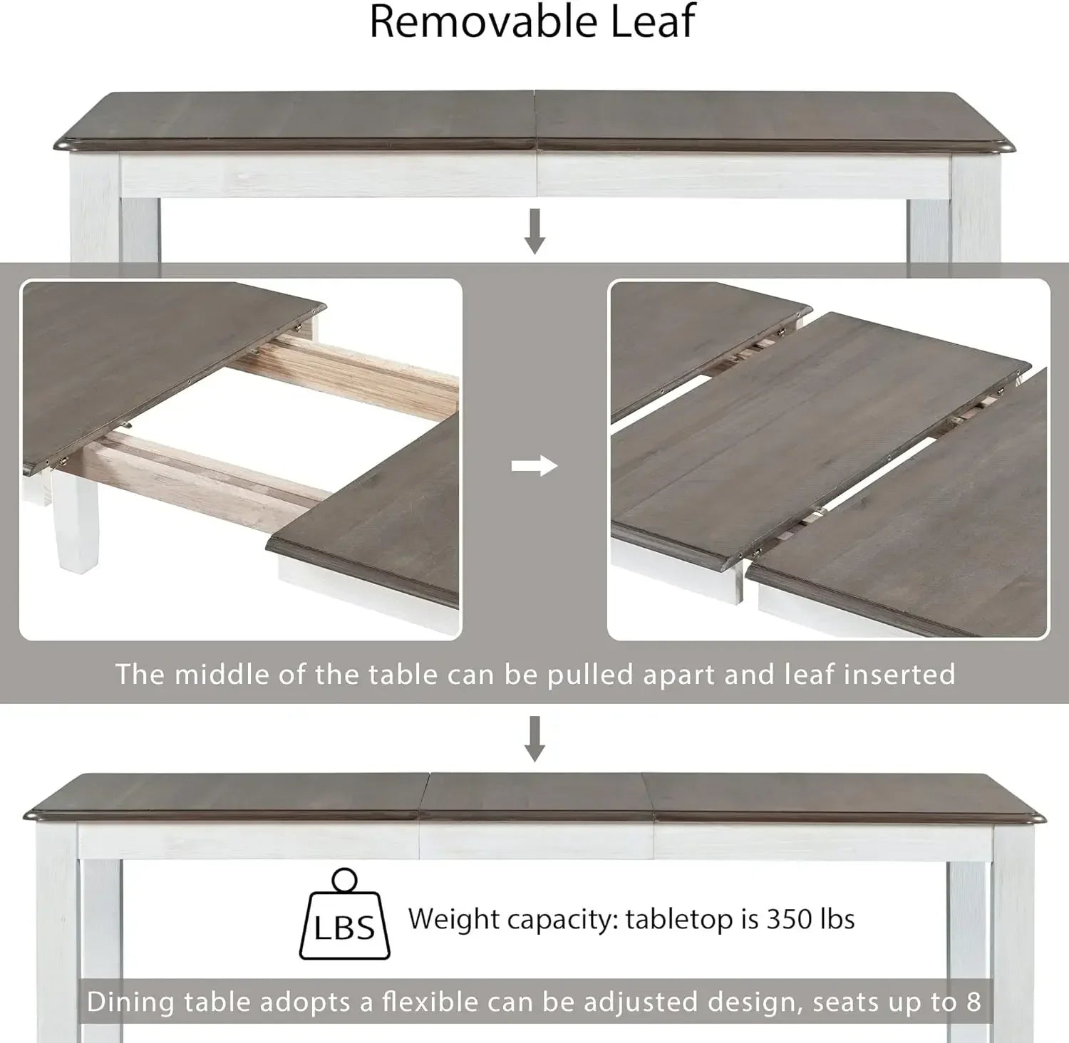 7-Piece Kitchen Dining Table Set for 6, Wood Kitchen Table and 6 Upholstered Chairs with Backrest