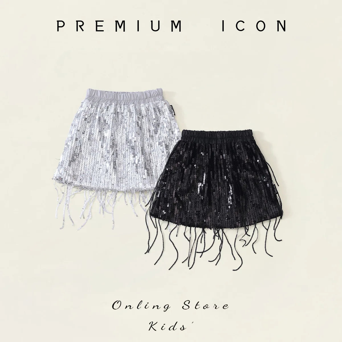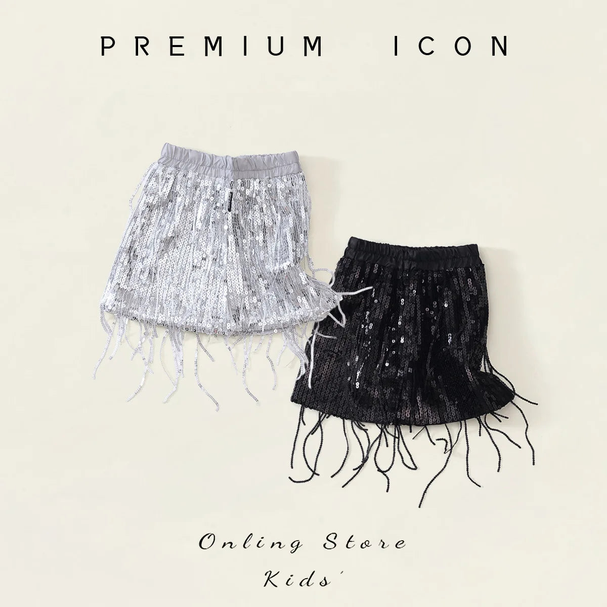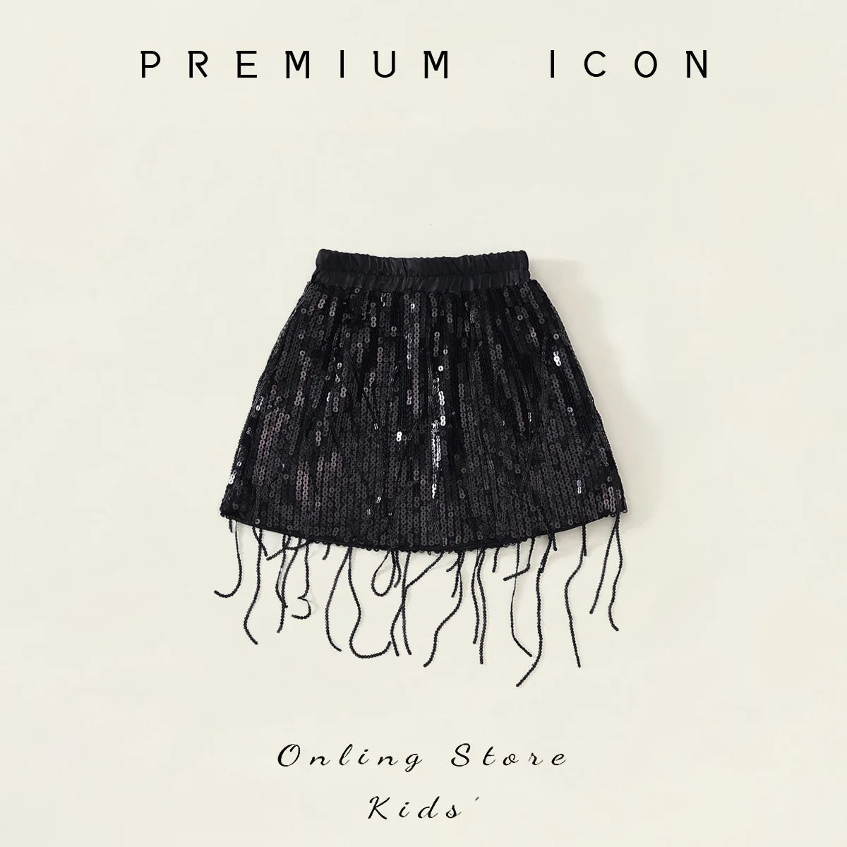 Girls' Tassel Sequined Half Skirt New Children's Light Luxury Fashionable A-line Skirt