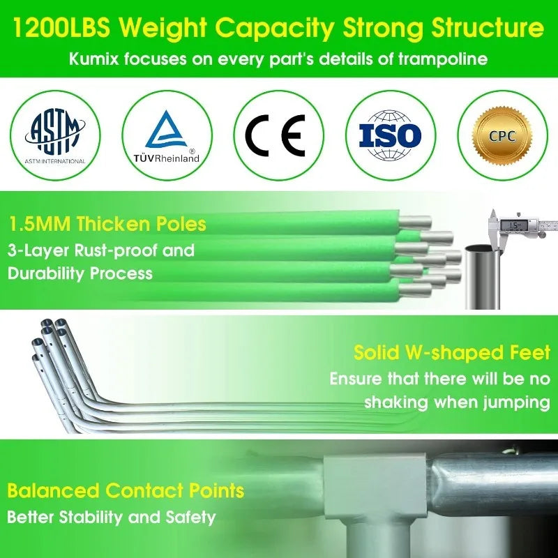 Tranpoline 1500LBS 16 15 14 12 10 8 FT Tranpoline for 7-10 Kids and Adults, Windproof Outdoor Tranpoline with Enclosure Net,